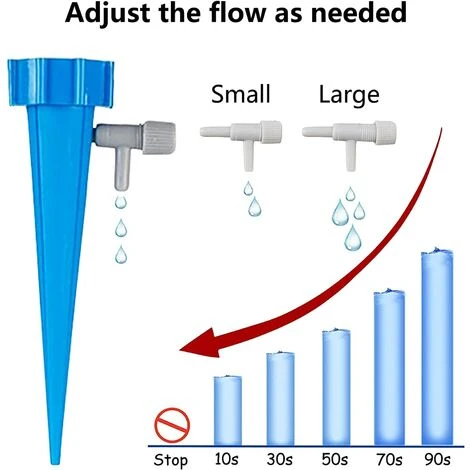 Arrosage automatique des plantes d’intérieur : le dispositif d’arrosage des plantes avec vanne de contrôle peut contrôler le commutateur de débit goutte à goutte pour contrôler le débit d’eau. La vanne peut régler le taux de goutte à goutte de 0 à 60 s / 1 goutte. Étant donné que différentes plantes ont des taux d’absorption différents, vous pouvez régler le débit d’eau correct en fonction de la demande en eau du système. Très adapté aux plantes scientifiques