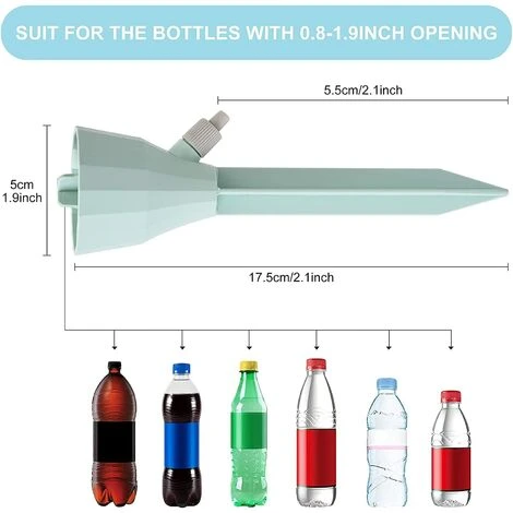 【Facile à utiliser】Convient à la plupart des bouteilles , qui ont un diamètre intérieur de 20 à 30 mm, par exemple : Pepsi, Coca Cola. Pas besoin de trouver une autre bouteille pour stocker l’eau. Pas d’installation fastidieuse ; percez ou découpez quelques trous au fond de la bouteille.