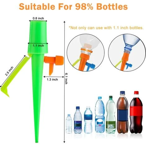 - 2.【Convient pour 80% des bouteilles】Les arrosages automatiques abandonne la conception agaçante de la vis bouchon. Lorsque vous utilisez les arroser automatique distributeurs , il vous suffit de l’insérer directement dans le goulot d’étranglement pour éviter les fuites d’eau. Vous n’avez plus besoin de chercher une bouteille d’un diamètre intérieur de 1,1 pouce partout .