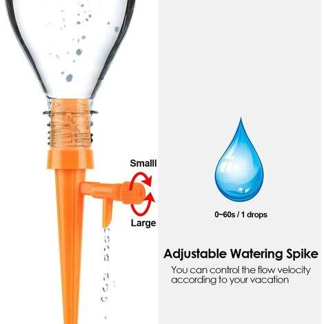 CONCEPTION D’EAU DE CONTRÔLE DE MISE À NIVEAU: Dispositif d’irrigation du système avec vanne de régulation capable de contrôler le taux d’égouttage de 0 à 60 s / 1. Offre de différentes quantités d’eau pour différentes plantes et fleurs qui va verser en goutte à goutte la quantité d’eau nécessaire. Les gouttes à libération lente durent de 1 à 15 jours ou plus, selon le temps requis.