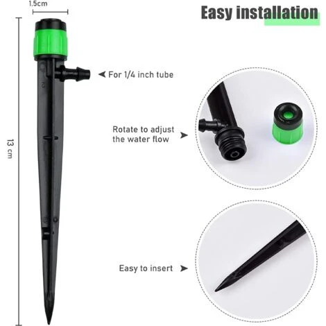【Utilisation large】: Les émetteurs d’irrigation goutte à goutte peuvent être utilisés dans une situation de basse pression. Convient pour les pots, baignoires, couvre-sol, jardins paysagers, parterres de fleurs, jardins potagers, serre, verger, pelouse, auto-plantation, arrosage des jardins d’herbes, etc.