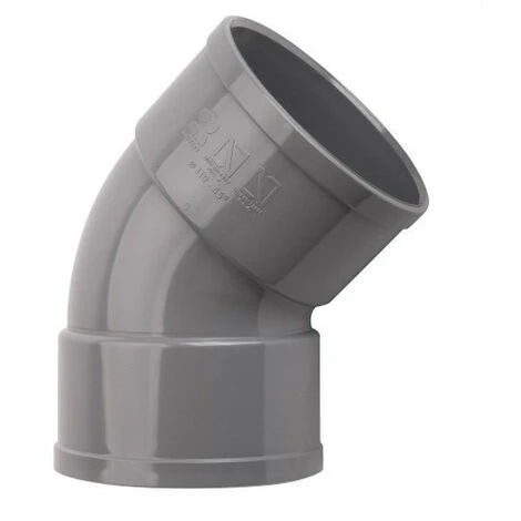 Coude 45º A5 femelle-femelle pour systèmes d évacuation. Fabriqué en PVC Eco, sans plomb, gris. Mesures 75cm.