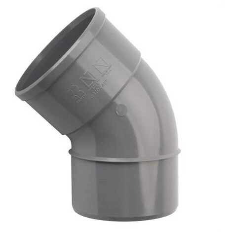 Coude 45º A8 Mâle-femelle, pour systèmes d évacuation. Fabriqué en PVC Eco, sans plomb, gris. Mesures 90cm.