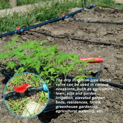 Économisez à la fois de l’eau et de l’énergie: la vanne d’arrêt d’irrigation goutte à goutte à utiliser avec les tubes 16PE, et la vanne rouge en haut est facile à utiliser, vous aidant à ajuster le débit d’eau ou à s’éteindre, peut vous aider à économiser l’eau efficacement.