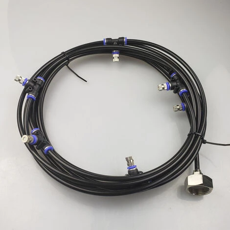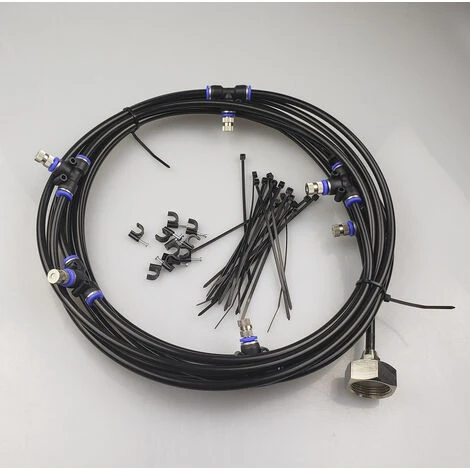 Ensemble de 6 mètres : 6 mètres de tuyau PE + 20 serre-câbles + 20 boucles + 6 buses et embouts + 1 connecteur à dents intérieures 6 points + 1 bouchon