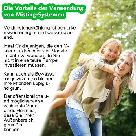 【Applicazione Wide Application】Le système de brumisateur de jardin est adapté pour refroidir la cour, refroidir la serre, humidifier la pelouse, refroidir le brouillard en pulvérisant la piscine, le parc aquatique avec un trampoline, etc. Augmentez l’humidité de l’air, réduisez la température et réduisez les particules flottantes dans l’air