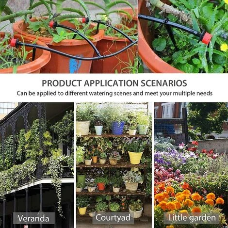 - 100% tout neuf et de haute qualité. Avec ce système de micro-irrigation, vous pouvez irriguer toutes vos plantes facilement. Cet ensemble d’irrigation est idéal pour les plantes de patio, d’atrium et de serre.