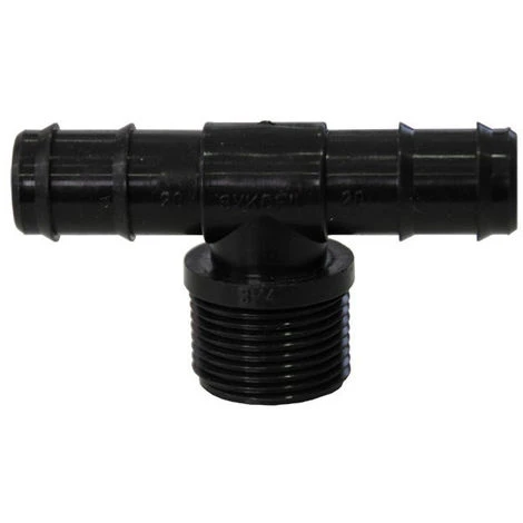 Té cannelé en polypropylène 20mmx3/4 »x20mm, avec filetage male au centre . Idéal pour relier 2 tuyaux , de diamètre identique, ensemble.