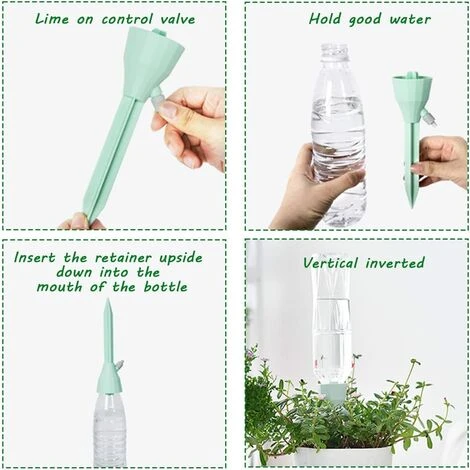 Arrosage automatique des plantes : fabriqué en matériau PP. Design amélioré, avec valve de contrôle, vitesse d’égouttement réglable, peut couler avec précision à la racine de chaque plante. Nos dispositifs d’arrosage automatique pour plantes s’adaptent à la plupart des bouteilles en plastique. Il peut être utilisé seulement pour les bouteilles de 2,8-3.0 cm.