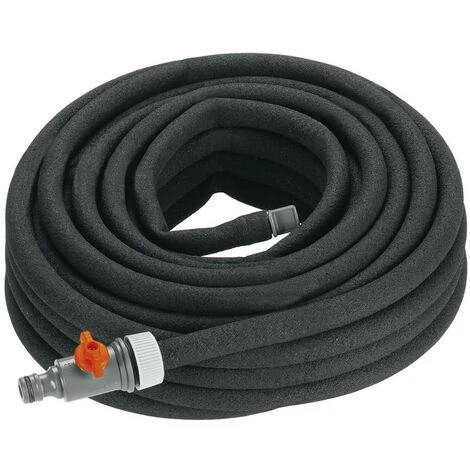 Le tuyau microporeux GARDENA convient particulièrement pour l’arrosage ciblé à économie d’eau pour les rangées de plantations, parce qu’il fonctionne même à basse pression. Il est prêt à être connecté à tous les raccords Original GARDENA System et est fourni avec une vanne régulatrice de débit et de pression. Le tuyau microporeux présente une longueur de 7,5 m. Il peut être raccourci ou rallongé par simple raccordement jusqu’à 30 m au maximum.