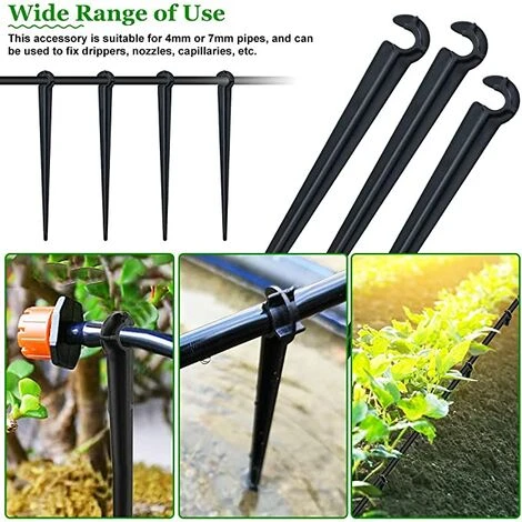 【Convient aux tuyaux d’irrigation de 4/7 « 】Chaque paquet contient 100 supports de tuyau, la longueur du support de tuyau est de 11 cm. Cela vous permet de l’utiliser suffisamment. Vous devez noter que ces accessoires conviennent aux tuyaux d’un diamètre intérieur de 4 mm et d’un diamètre extérieur de 6 à 7 mm. Vous pouvez choisir selon vos besoins.