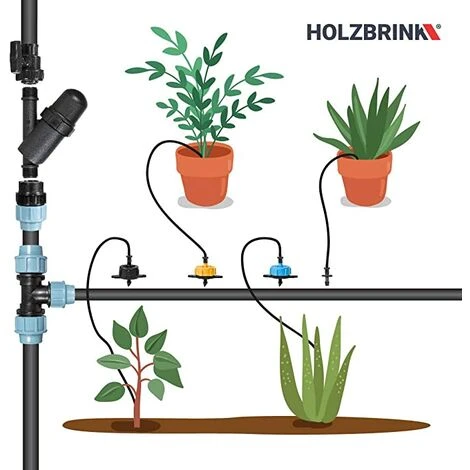- Économie d’eau – le kit HOLZBRINK permet d’économiser jusqu’? 70 % d’eau – les plantes reçoivent une alimentation en eau optimale qui va au bon endroit
