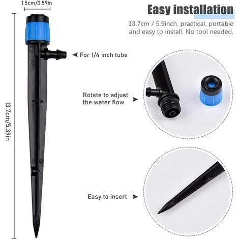 【Utilisation large】: Les émetteurs d’irrigation goutte à goutte peuvent être utilisés dans une situation de basse pression. Convient pour les pots, baignoires, couvre-sol, jardins paysagers, parterres de fleurs, jardins potagers, serre, verger, pelouse, auto-plantation, arrosage des jardins d’herbes, etc.