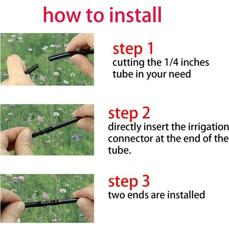 [Grande valeur] 100 pièces de connecteurs barbelés sont inclus. [Ajuster le connecteur de tuyau d’irrigation 1/4 pouce] Ce raccord de connexion barbelé relie deux parties de tout type de tuyaux d’irrigation goutte à goutte 1/4. Deux extrémités barbelées peuvent rendre la connexion robuste. Astuce: veuillez vérifier attentivement la taille avant d’acheter. [Facile à installer] Sans outils ni colle , insérez directement le connecteur d’irrigation à l’extrémité de la conduite d’eau, ce qui rend le jardinage plus pratique et plus efficace. Conseil: chauffez l’extrémité du tuyau pour l’aider à glisser sur le raccord. [Matériau haute résistance et durable] Le connecteur 1/4 pouce est fait de plastique haute résistance, qui n’est pas facile à déformer et a une durée de vie plus longue. [Largement utilisé] Les raccords de connexion pour tuyaux d’irrigation de 1/4 pouce aident à construire des systèmes d’irrigation sans entretien, qui sont très appropriés pour les jardins, les serres, les plates-bandes, les terrasses et autres systèmes d’irrigation agricole.