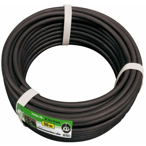Informations produit: tuyau goutte à goutte Matériau: polyéthylène Coloris: Noir Diamètre: 16 mm Longueur: 50m Débit 1.6 l/h à 1 bar Marque: Jardibric