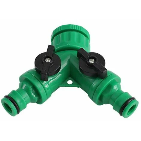 Convertit un seul robinet de jardin en 2 prises. Comprend une vanne d’arrêt à chaque sortie.