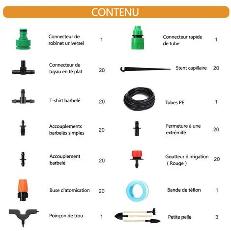 Utilisations: fleurs, plantes, bonsa? et fruits en pot, irrigation goutte a goutte de jardin