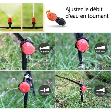 1. Fonction de kit d’arrosage goutte a goutte de jardin de tuyau de distribution de systeme d’arrosage: arrosez toutes les plantes en meme temps. Apres avoir installe l’equipement d’arrosage, il vous suffit d’ouvrir le robinet en cas de besoin.