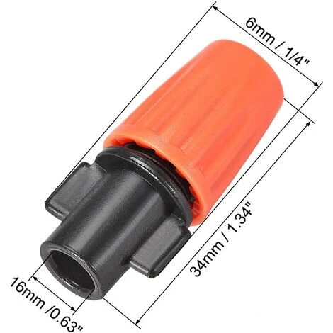 Fabriqué en cuivre et en plastique, durable et longue durée de vie.Les particules de brouillard d’eau réglables peuvent fournir de façon égale plus d’éléments nutritifs pour chaque plante sans causer un surplus d’éléments nutritifs.Pulvérisation d’eau pulvérisée de façon uniforme, utilisation efficace et économique.Buse amovible pour un nettoyage facile.Idéal pour , balcon, serre, horticulture, pelouse, irrigation de patio. Il convient également à l’humidification en serre, au en usine et même au lavage de voitures. Spécifications:Matériel: PlastiqueDiamètre de l’interface: 6mm / 1/4″Rayon de pulvérisation: 0.8-1.2MPression de service: 1.5-3KGFlux de débit: 8-15L/HTaille Totale: 34mm x 16mm / 1.34″ x 0.63″ (L*Max.D)Contenu Emballages:15 x Arroseurs réglables