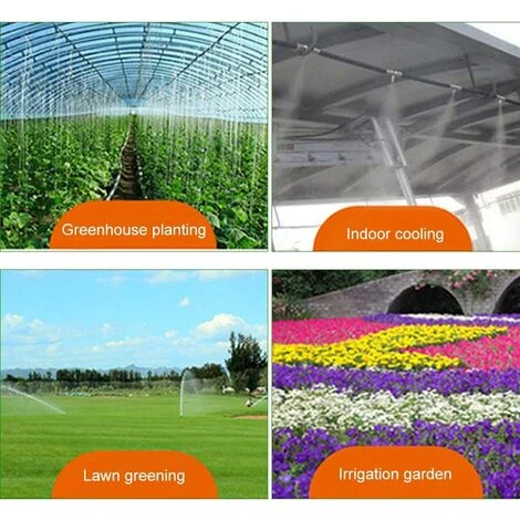 Application large – Les buses de brouillard peuvent être appliquées aux systèmes d’arrosage de jardin, d’aménagement paysager, d’irrigation agricole, de refroidissement extérieur et de serre.