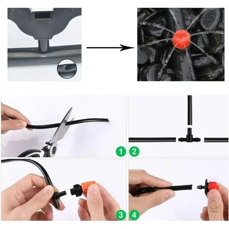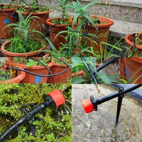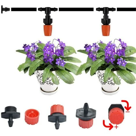 Le kit d’irrigation de jardin encre 50 pièces d’arrosage compte-gouttes d’irrigation réglables, 50 pièces de raccord en T, 50 pièces d’ancrage au sol pour tuyau d’arrosage et 1 pièces de perforateur. Vous pouvez l’utiliser pour l’irrigation automatique.