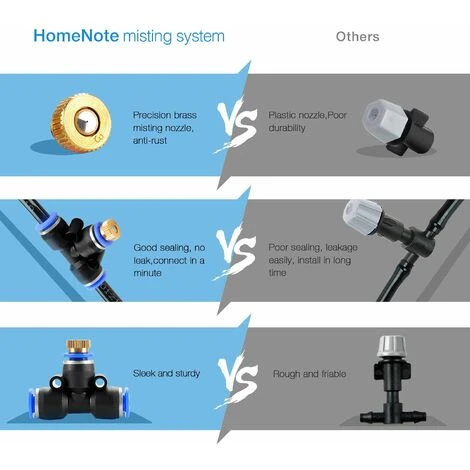Qualité supérieure: les joints métalliques, meilleurs que le laiton, les tubes de brumisation PU durables offrent une expérience de qualité.