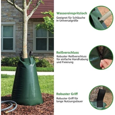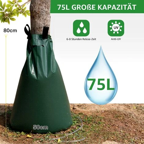 【Grande capacité du sac à eau】: le sac peut contenir 75 litres d’eau et le laisser s’écouler lentement pendant 6 à 10 heures. En raison de l’irrigation longue et uniforme, les arbres peuvent absorber l’eau plus efficacement qu’avec une irrigation normale.