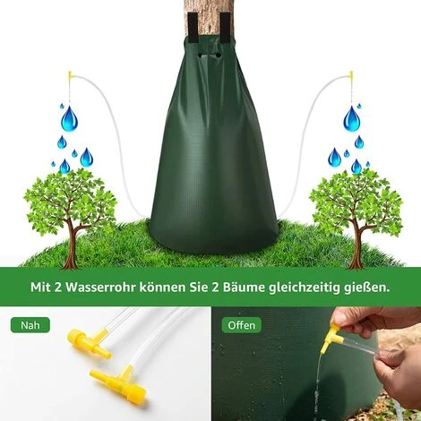 【Facile à utiliser】: il suffit d’enrouler la poche à eau sur le tronc de l’arbre, d’ouvrir la fermeture éclair et de verser l’eau. Il y a 2 goutteurs qui vous permettent d’arroser deux arbres adjacents en même temps. Le goutteur peut contrôler le débit et basculer à tout moment. La fermeture à glissière sécurisée vous permet de connecter plusieurs sacs pour les arbres de grand diamètre.