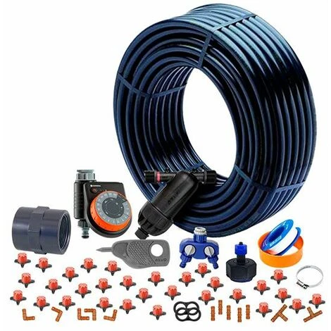 Kit d’irrigation goutte à goutte avec programmateur idéal pour tous les types de vergers ou jardins. Ce kit d’irrigation avec un programmateur complet est la meilleure option si vous souhaitez gérer l’arrosage de votre jardin de la manière la plus efficace. Ce kit d’irrigation goutte à goutte comprend tout ce dont vous avez besoin pour que votre système d’irrigation puisse s’adapter à n’importe quel espace.