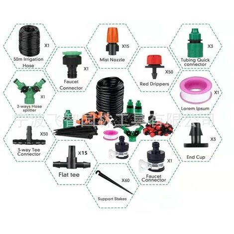 Convient tous les robinets Le kit dirrigation goutte goutte 50M contient 158 accessoires darrosage. Livr avec 2 types de connecteur de robinet filet. Lun est un faux connecteur de filetage (avec couvercle). Il convient aux robinets 1/2 et 3/4. Un autre raccord est un raccord de robinet universel, adapt aux robinets non filets. Le tuyau est fabriqu en plastique ABS de haute qualit, rsistant aux UV et aux produits chimiques.