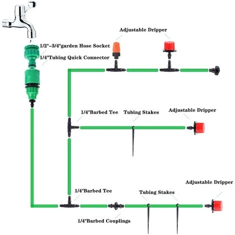 Facile installer et embouter / 2 et 3/4 , ce systme dirrigation goutte goutte est livr avec tous les accessoires dont vous avez besoin pour lirrigation automatique du jardin. Conseils: Faites tremper lextrmit du tube dans de leau chaude pendant 15 secondes avant denfoncer les raccords. Ce sera plus facile et au fur et mesure quil refroidira, le tube restera tanche.