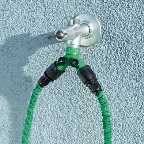 Créez deux branchements à partir d’un seul ! Fixez simplement le répartiteur d’arrosage sur votre robinet extérieur. Vous pouvez alors arroser votre jardin avec 2 tuyaux d’arrosage. Il suffit pour cela d’ouvrir le robinet du distributeur d’eau à 2 voies.