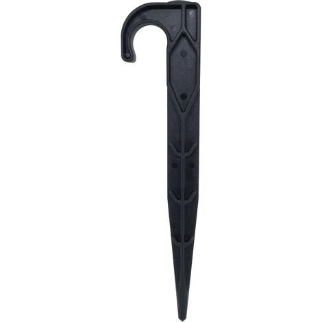 | Sachet de 25 piques crampons pour tuyau ø13-16mm. La pique est crantée pour lui permettre de rester dans le sol et de tenir le tuyau. |