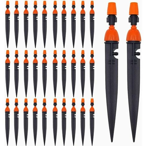 Angle d’irrigation de 360?degrés, adapté aux tubes de 4/7?mm (diamètre intérieur/extérieur). H?: 21?cm/8,25?pouces, plastique résistant aux UV. Goutte et pulvérisation d’eau Double fonction, s’éteint individuellement. Débit d’eau réglable, vous pouvez les ouvrir ou les fermer selon vos besoins. Le débit d’eau est réglable. Débit réglable de 0 à 13 gallons par heure, adapté aux pots, baignoires, couvre-sol, jardins paysagers, etc. Piquets d’irrigation goutte à goutte en plastique PE d’origine, légers, anti-acides et alcalins, anti-corrosifs , résistant aux basses températures, sans odeur, durable et longue durée de vie dans le sol. Pulvérisation d’irrigation goutte à goutte jusqu’à 120 L/h de débit, 1,65 pieds de distance, 10 piquets goutte à goutte peuvent arroser automatiquement une plus grande surface.