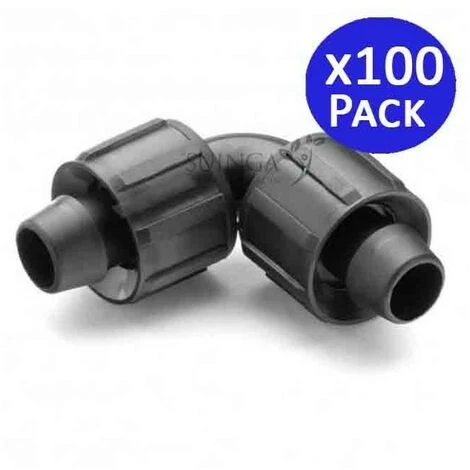 - Manchon coudé pour ruban d’irrigation goutte à goutte de 16 mm.