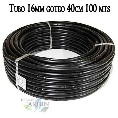 - Bobine de 100 mètres avec goutteurs 2,5 l / h tous les 40 cm. Tuyau en polyéthylène agricole de 16 mm de haute qualité en noir.