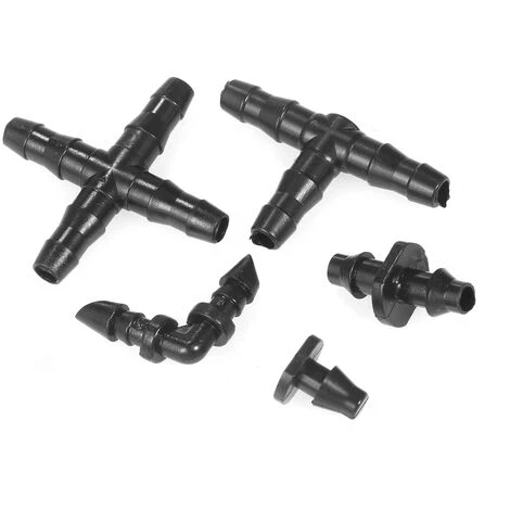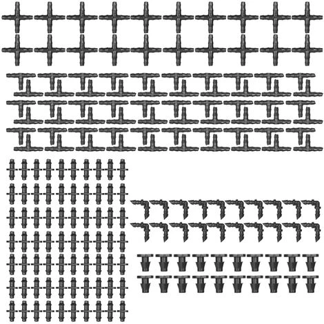 Kit de raccords d’irrigation: un ensemble de raccords de connecteur cannelé assortis contient des cannelures droites, des tés de tube, des raccords coudés, un bouchon d’extrémité et un raccord à 4 voies.