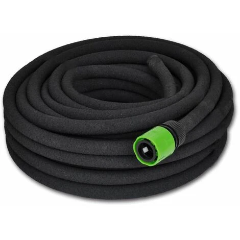 Ce tuyau microporeux flexible est spécialement conçu pour l’arrosage de jardin et l’irrigation. Fait de matériaux résistant aux intempéries, le tuyau assure une longue durée de vie et une excellente durabilité. Avec une longueur de 25 m, le tuyau peut être étendue. Il dispose également des milliers de micropores qui empêche le concassage et le blocage du tuyau et assure que l’eau atteigne directement aux racines. L’évacuation de l’eau goutte à goutte sur tout tuyau contribue à économiser l’eau. En outre, le tuyau microporeux peut être enroulé pour faciliter le stockage et le transport. Le tuyau microporeux est un choix parfait pour l’usage domestique ou commercial. Remarque: En raison de la pression de l’eau, l’eau suinte du tuyau microporeux en entraînant un effet de fuite. Il suffit de jeter le tuyau sur le sol et le connecter à une source d’eau.