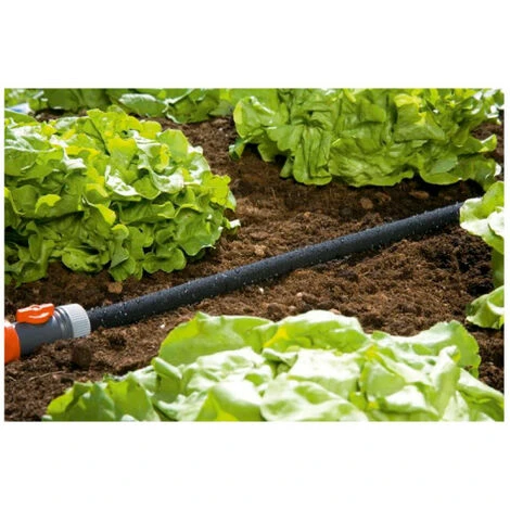 Letuyau micro-poreux 20m GARDENA – 1969-26, est idéal pour un arrosage ciblé et économe en eau de vos plantes en ligne. Grâce à l’arrosage goutte à goutte, vous pouvez économiser jusqu’à 70 % d’eau par rapport aux méthodes d’arrosage classiques. Avec la vanne de régulation installée, vous pouvez régler le débit et la pression de l’eau, pour ajuster l’arrosage du jardin à vos besoins. Prêt à l’emploi, il peut être fixé immédiatement à votre tuyau GARDENA préexistant. Il est possible de prolonger le tuyau ou, si nécessaire, de le raccourcir, afin de rendre votre travail de jardin plus efficace. Le tuyau micro-poreux est un produit de qualité fabriqué en Allemagne.